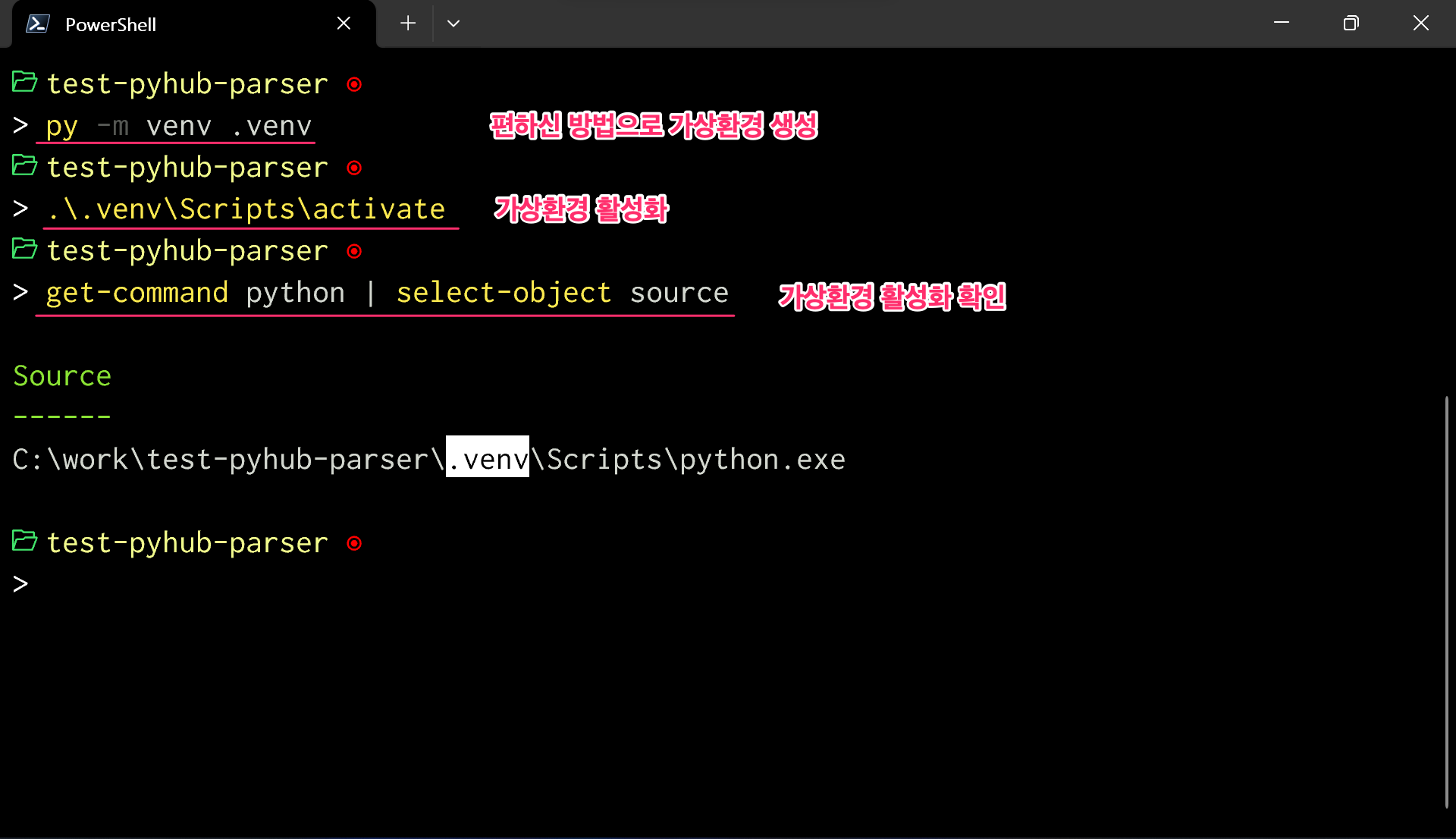 # 환경변수 PATH 이슈가 있으실 경우, pyhub.parser 명령을 못 찾으실 수 있습니다.