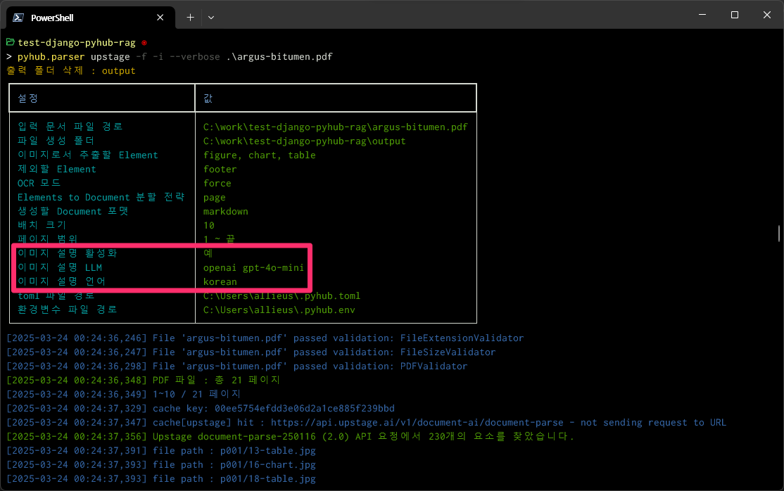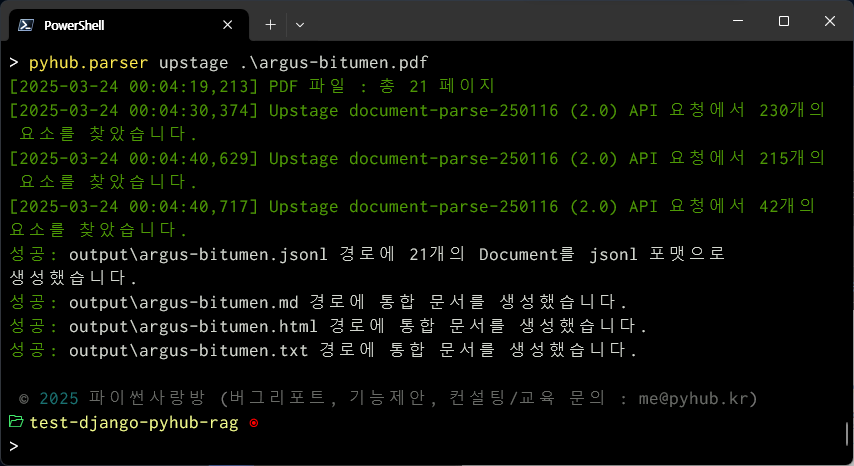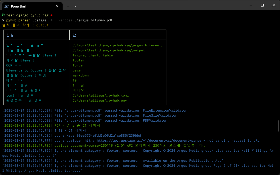 방금 수행한 pyhub.parser upstage -i ./argus-bitumen.pdf 명령을 다시 수행해보시면