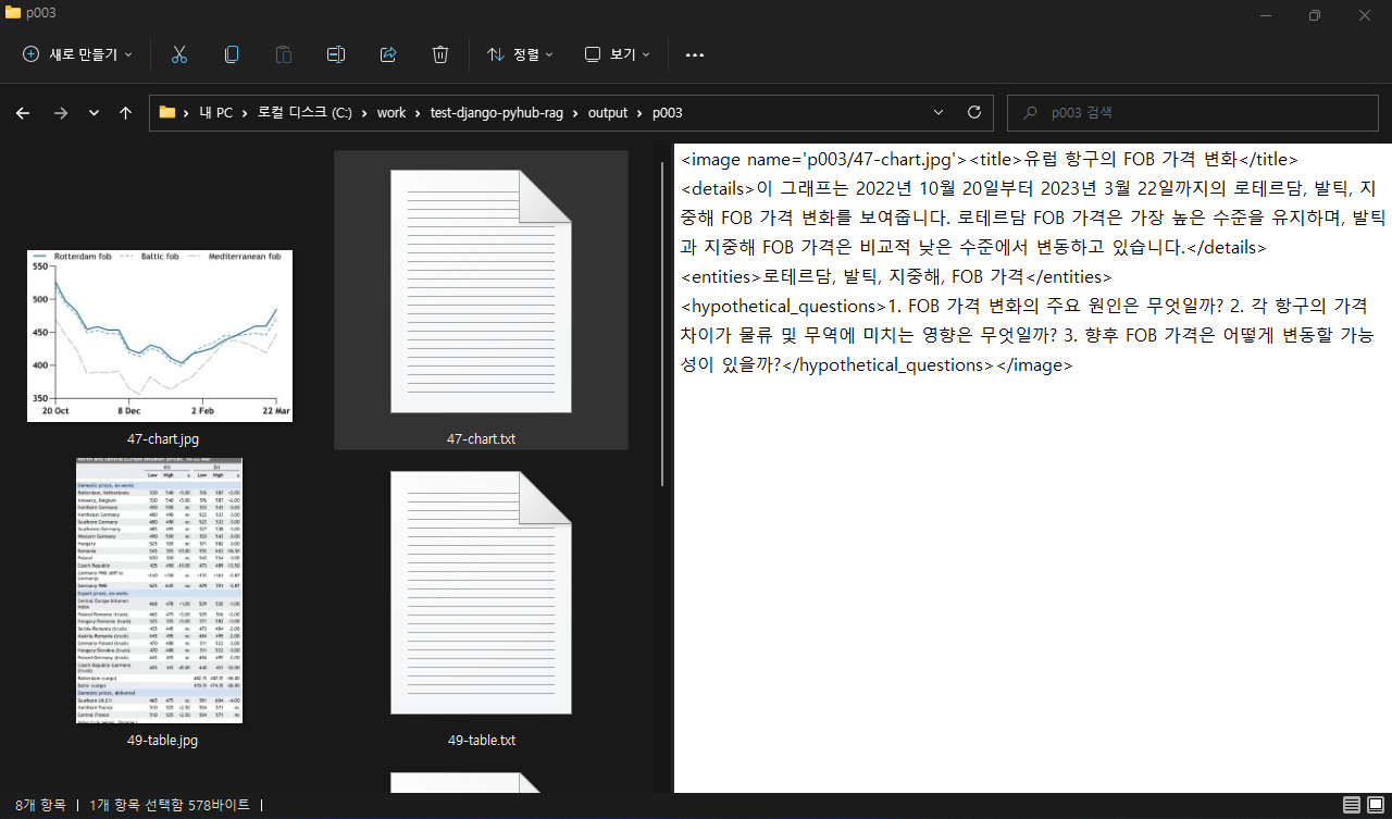 argus-bitumen.jsonl (PDF 파일명을 따릅니다.) 경로에 Vector Store에 즉시 저장하실 수 있도록 Document(page_content, metadata) 포맷의 jsonl 파일로 생성됩니다.