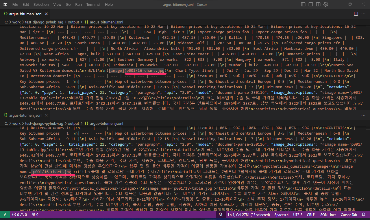 생성된 ./output/argus-bitumen.jsonl 파일의 한 Document 문서는 아래와 같구요.